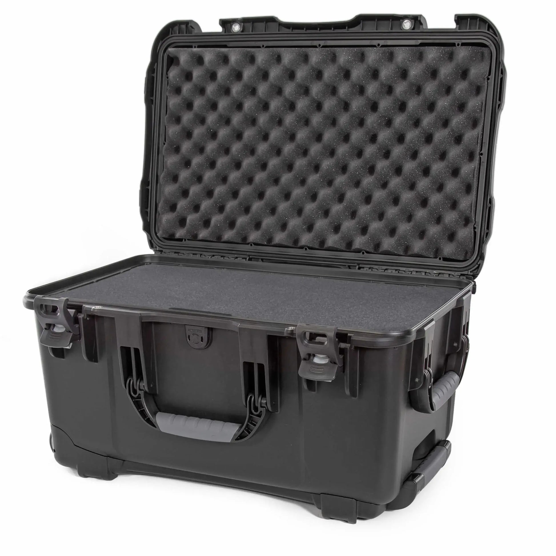 The NANUK 938 protective case features stainless steel hardware and spring- loaded handles to avoid harm when traveling or during shipping.