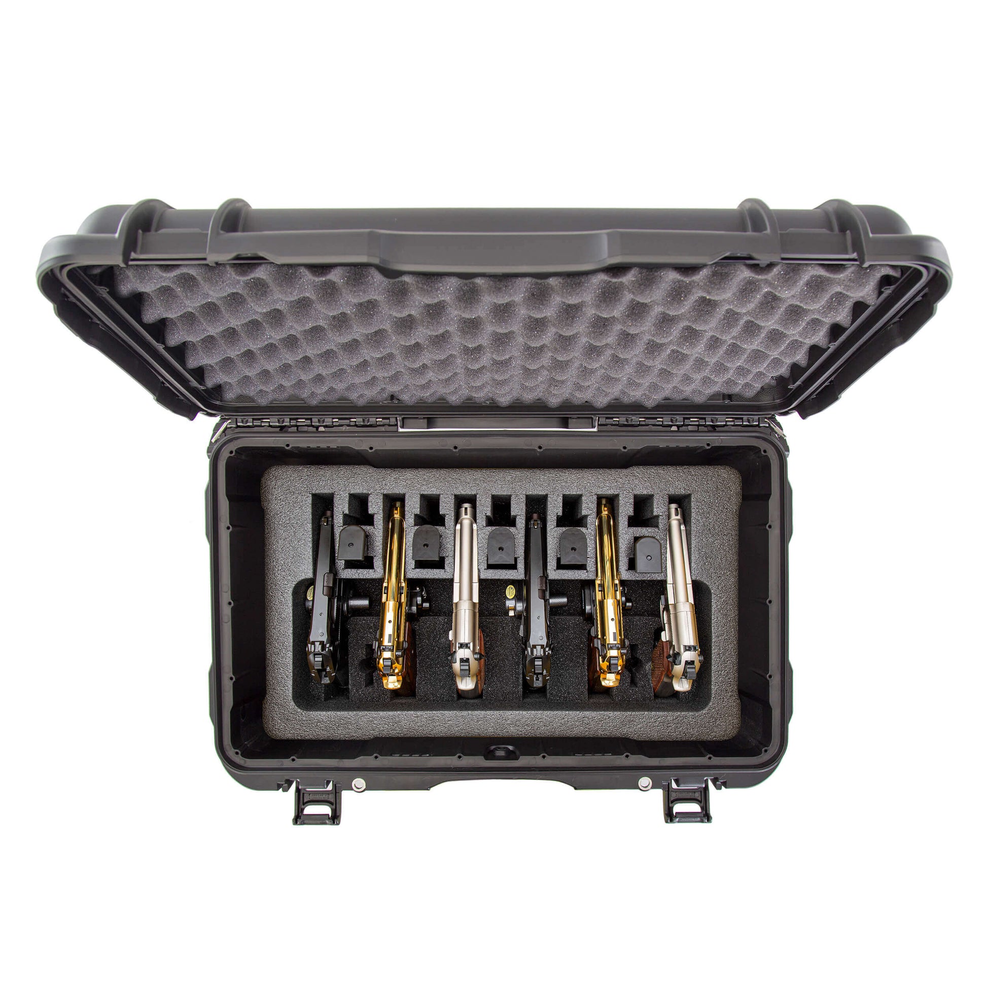 The NANUK 938 6 UP Pistol Case provides secure storage for up to six (6) full-frame handguns with trigger locks and ten (10) magazines.